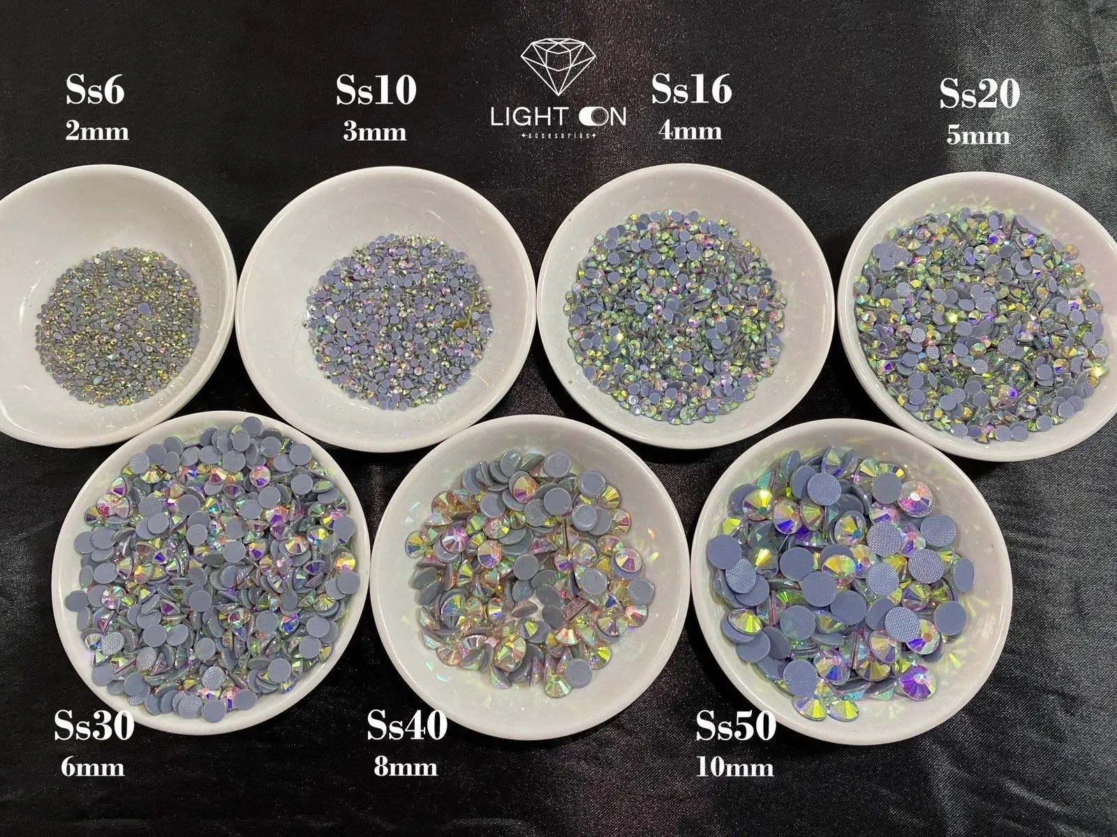 ¡Agrega un toque de brillo a tus creaciones con esta hermosa pedrería crystal de Light On accesorios. Es Perfecto para manualidades, decoración de uñas, decorar vestuarios o accesorios de moda, . Dale un toque de glamour a tus proyectos con esta hermosa pedrería brillante en todos sus tamaños, ss6...