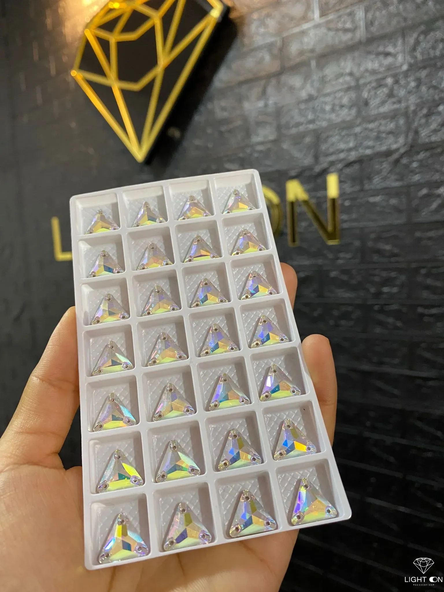 Pedreria Vidrio Bella Stone Triangulo tornasol todos los tamaños (12*12mm, 16*16mm) por (unidad)