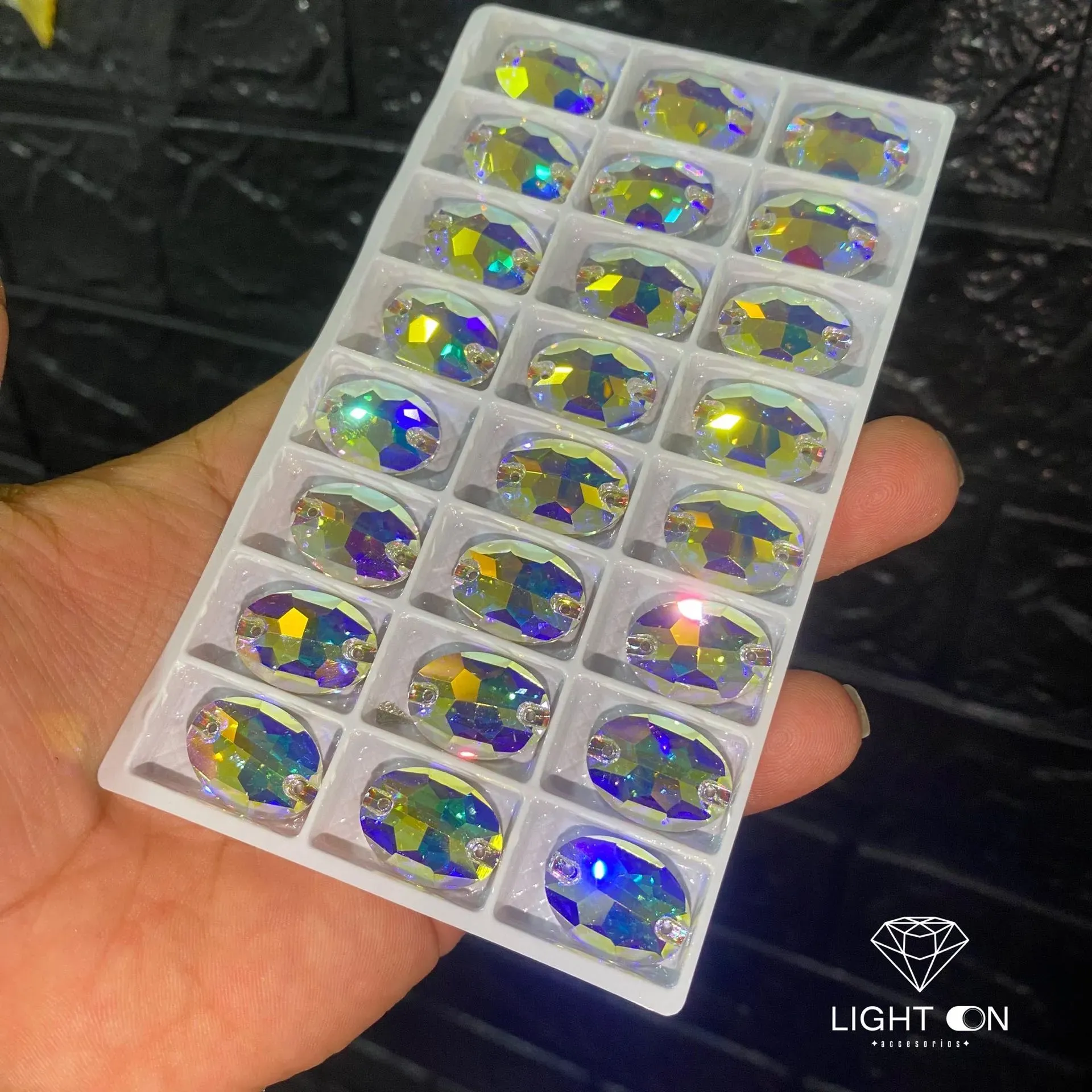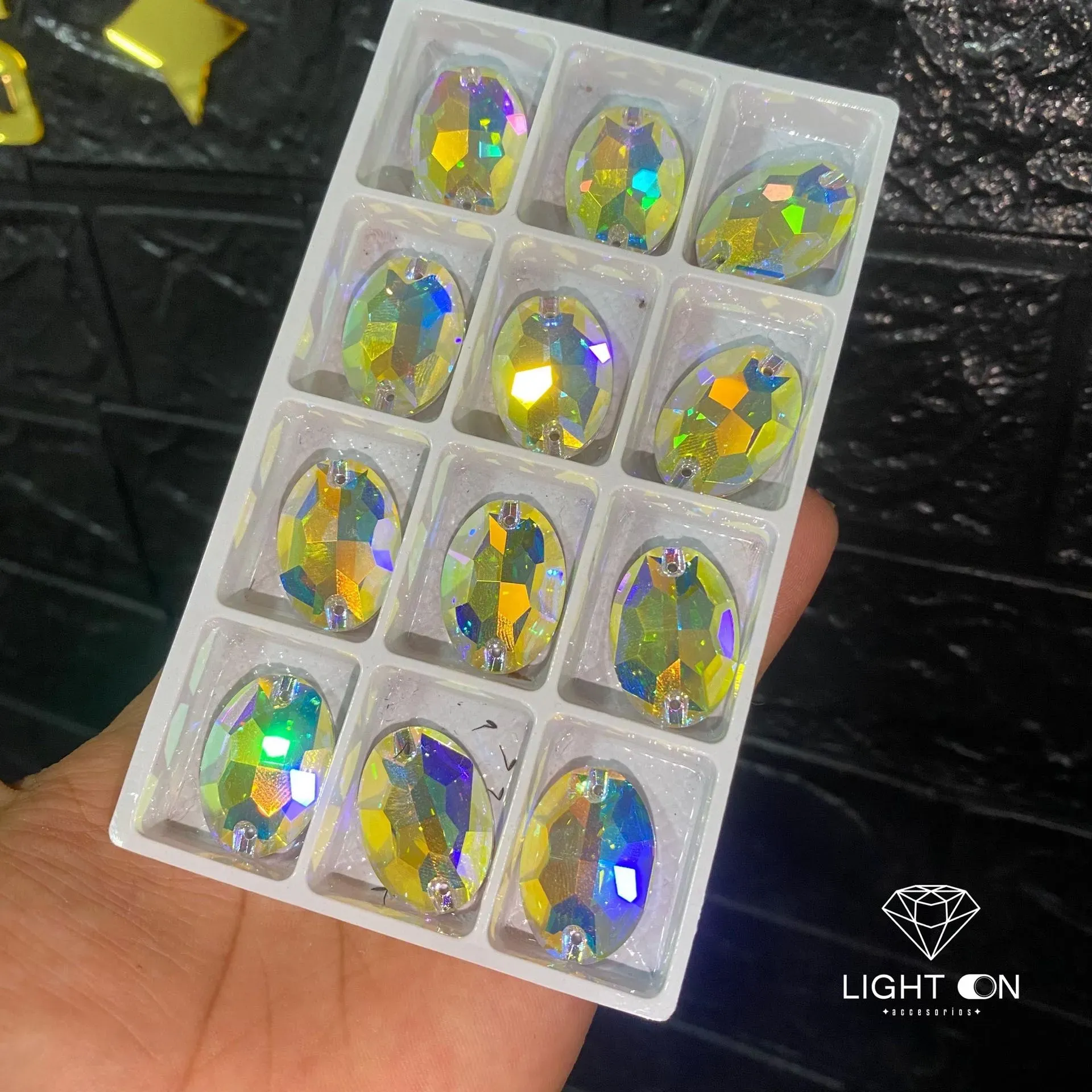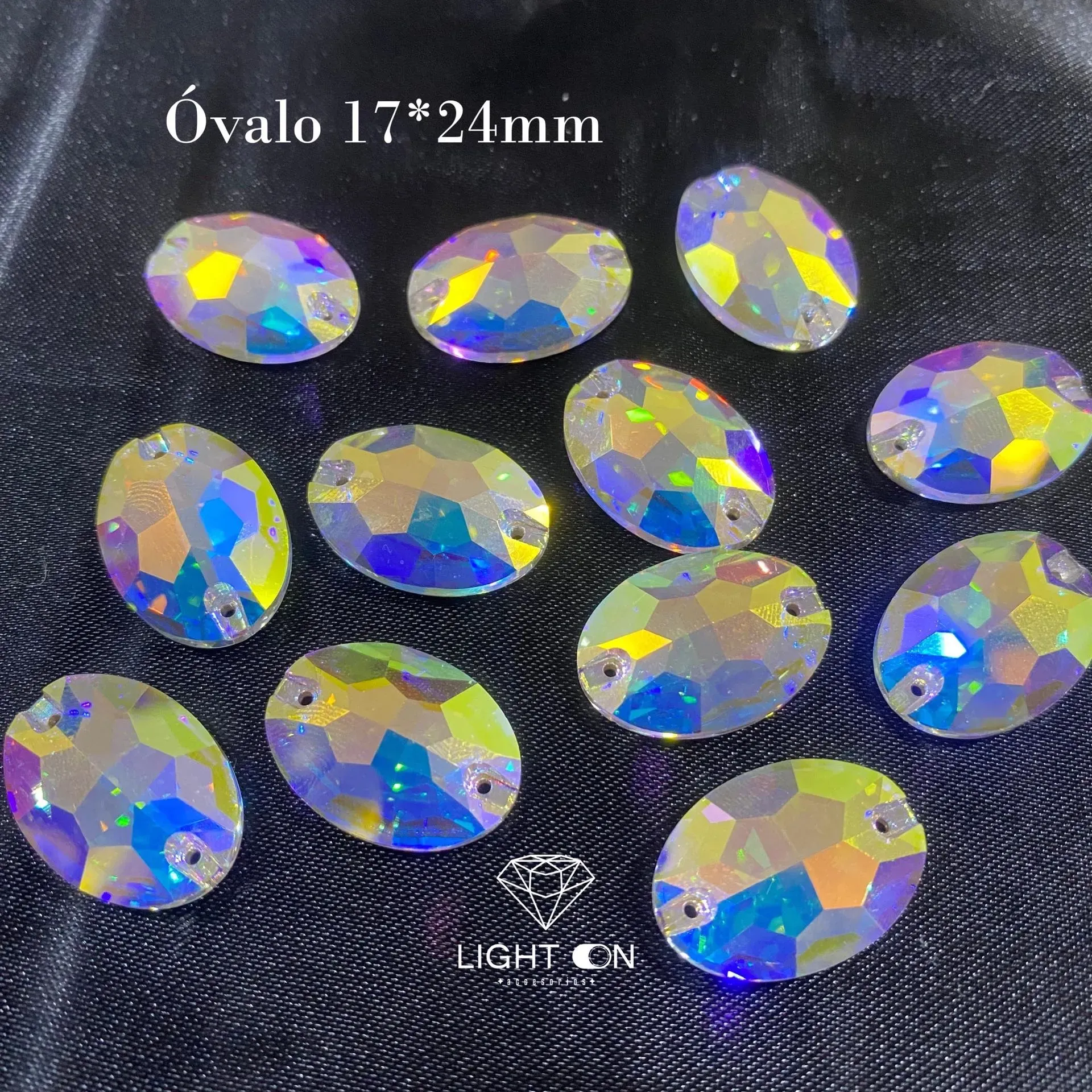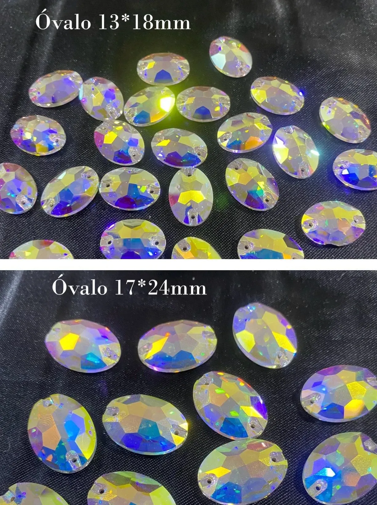 Decora tus vestuarios y tocados con este elegante pedrería ovalado tornasol, disponible en todos los tamaños. Añade un toque de estilo y sofisticación a cualquier espacio, esta pedrería es perfecta para la decoración lo que desees