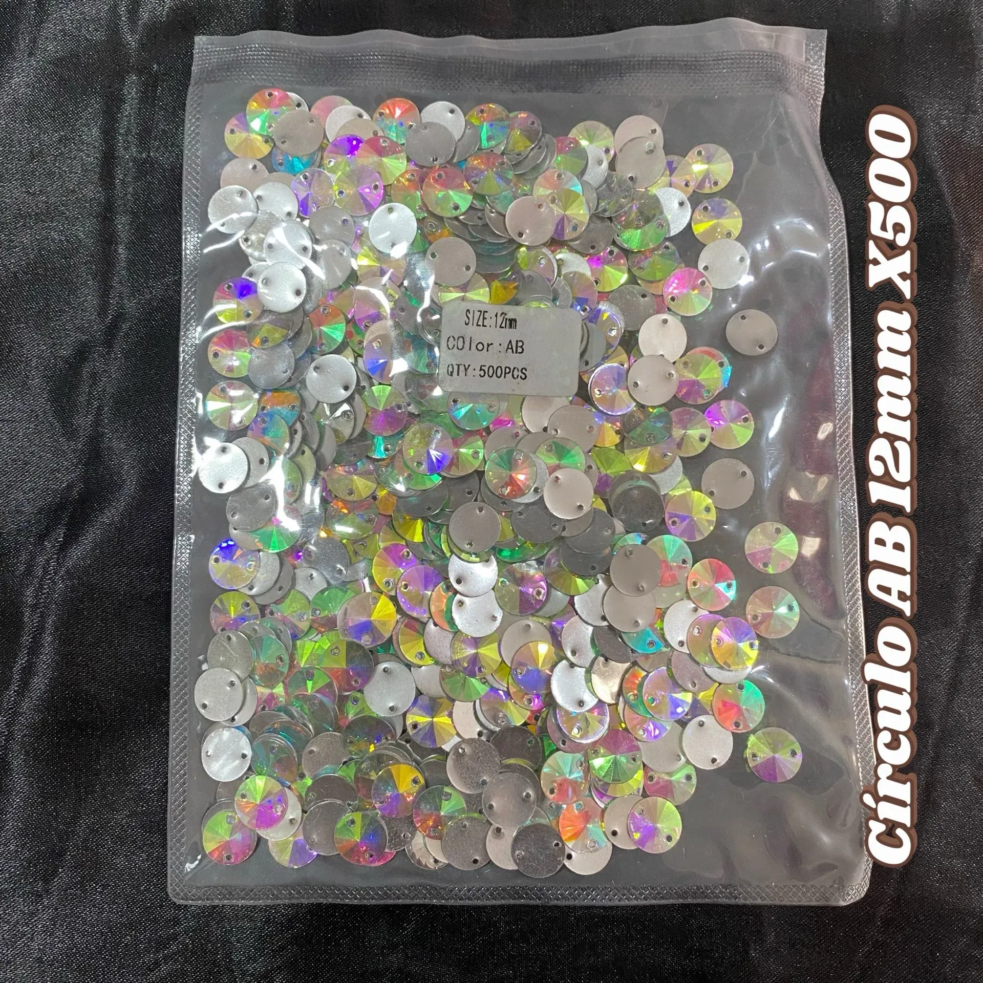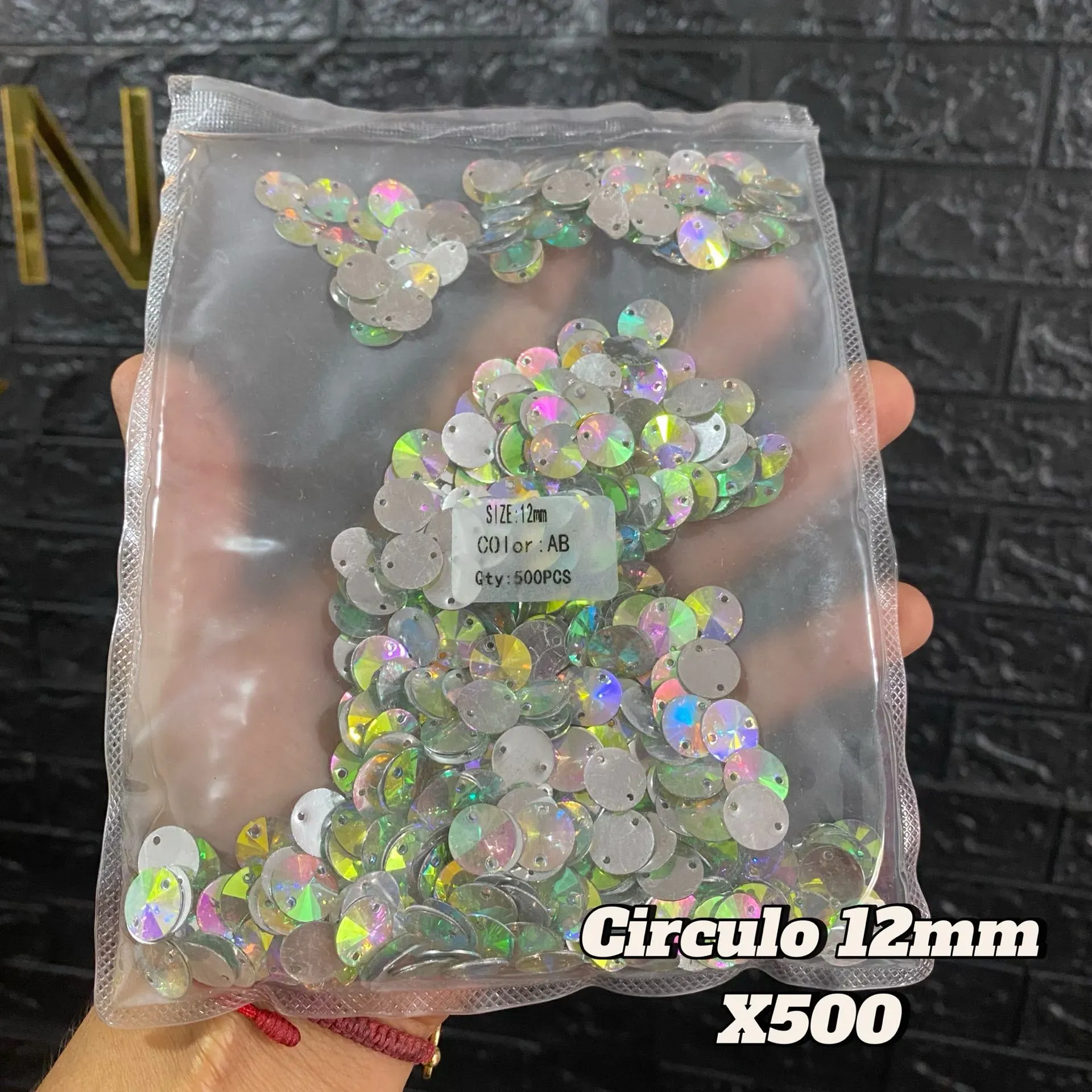 Paquete de pedreria Bella Stone plastica Circulo 12mm tornasol de 500 unidades
