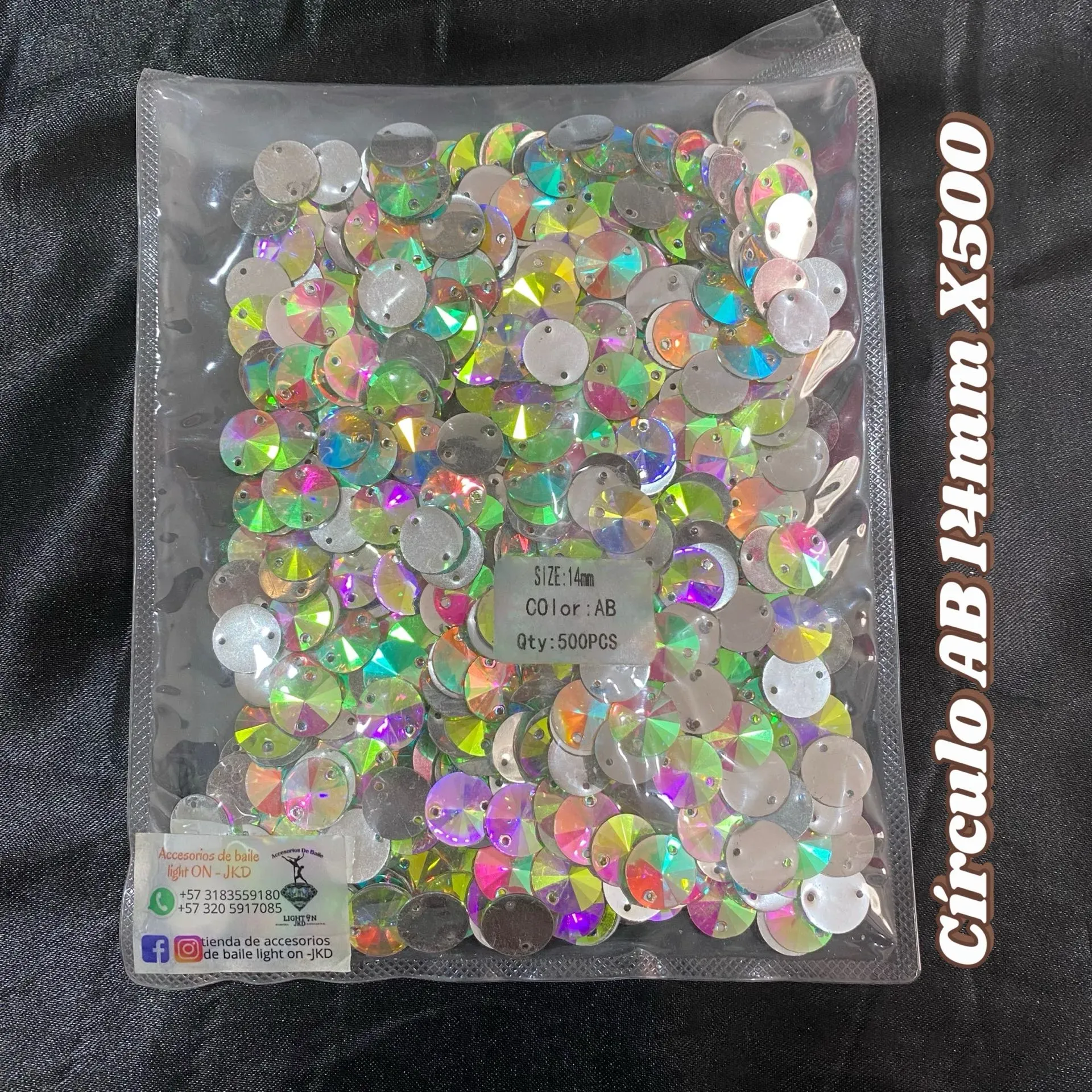 Paquete de pedreria Plastica Bella Stone Circulo tornasol 14mm. 500 unidades