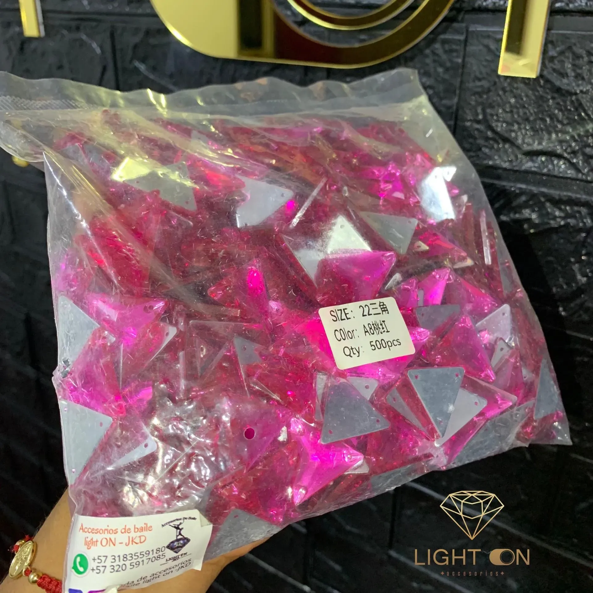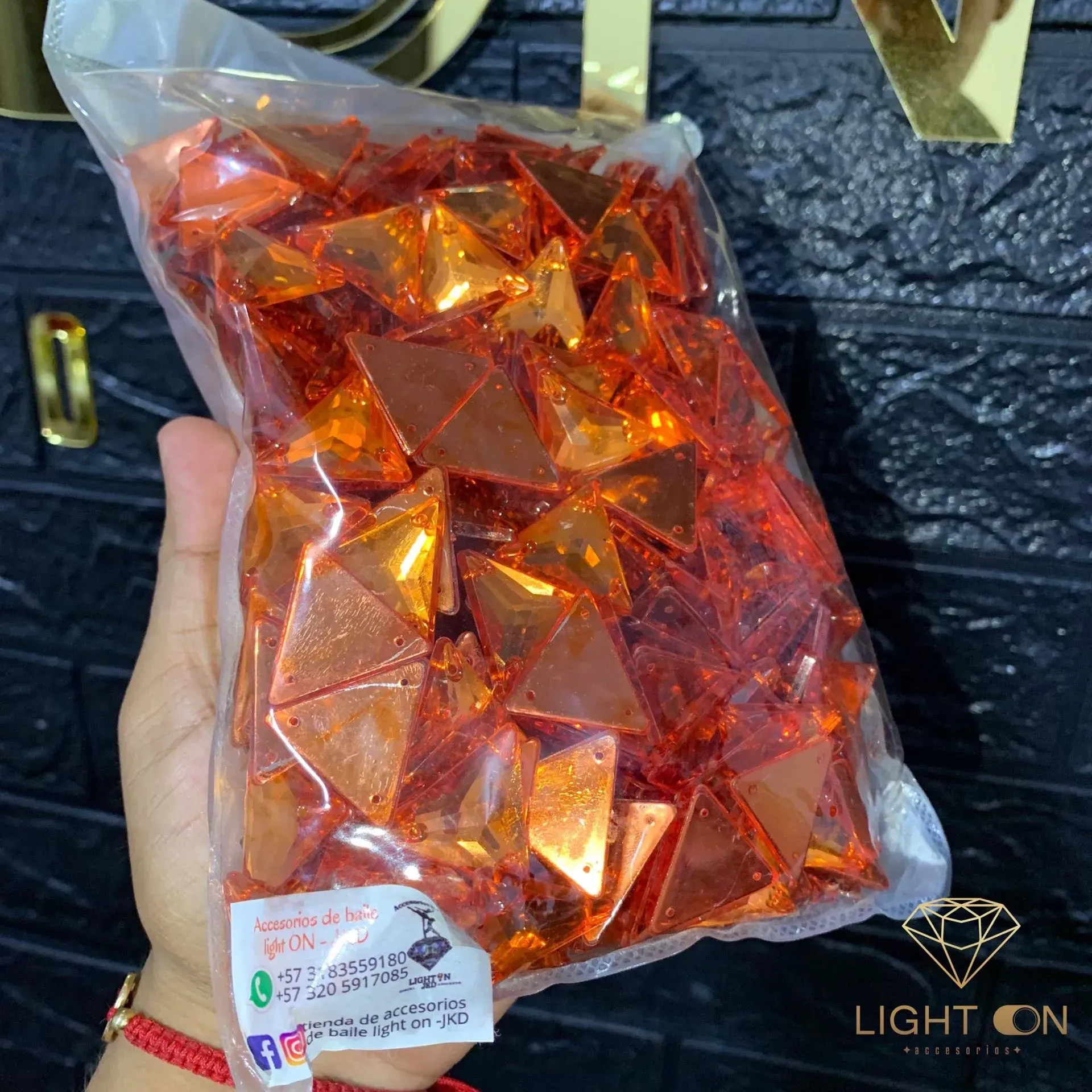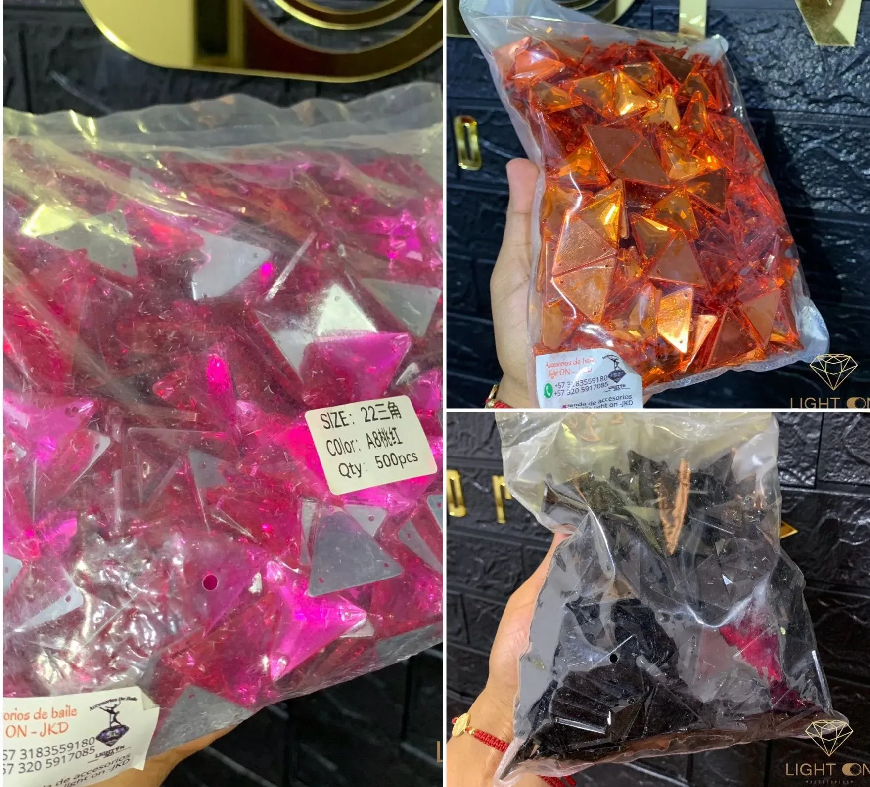 Paquete de 500 triángulos plásticos en todos los colores. Ideal para manualidades, tocados, vestuarios y decoración. Producto de alta calidad y durabilidad. ¡Aprovecha esta oferta y dale un toque creativo a tus creaciones con la pedrería de light on accesorios !