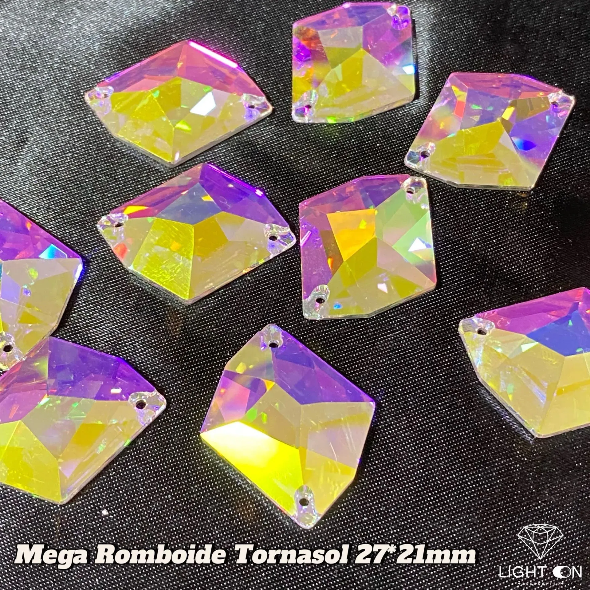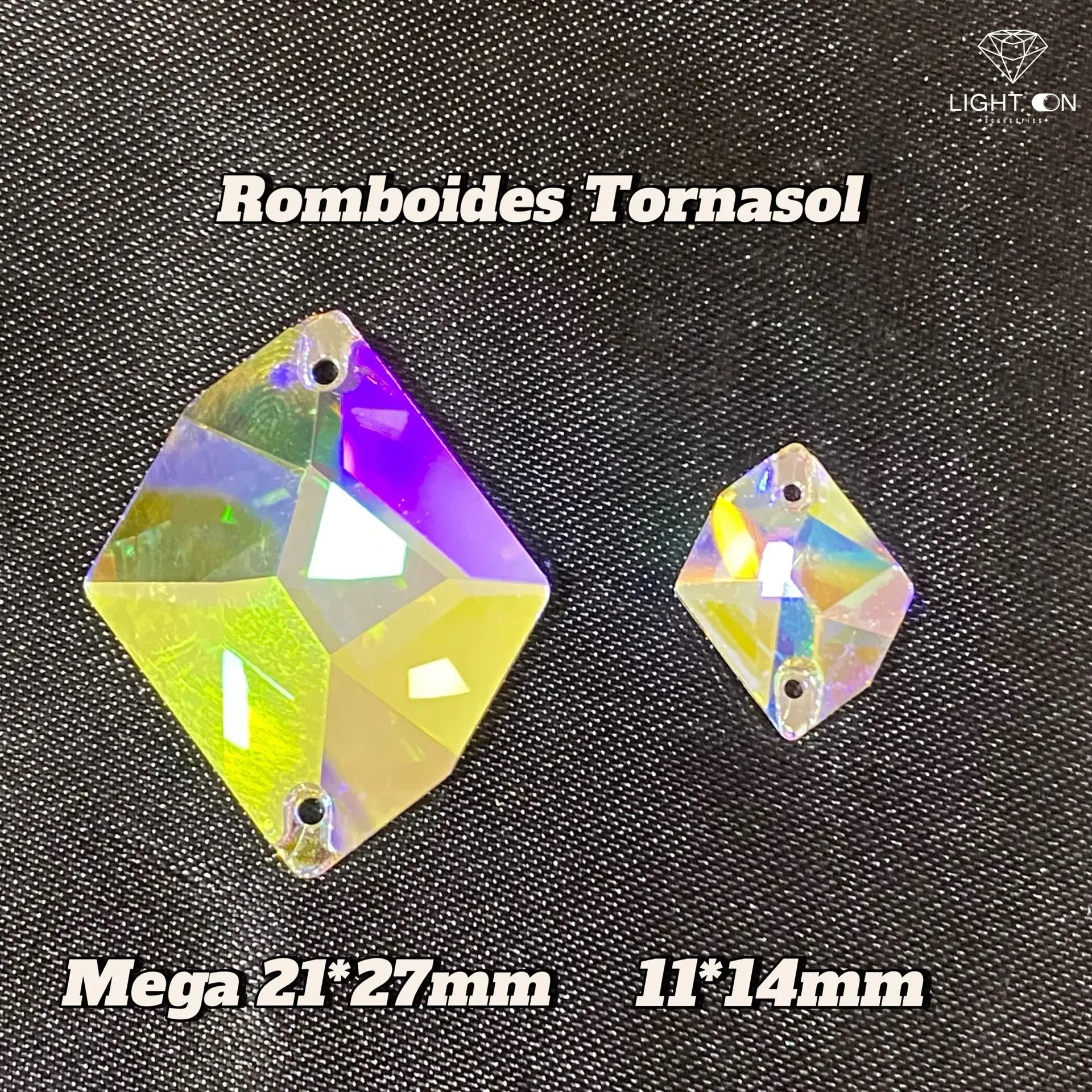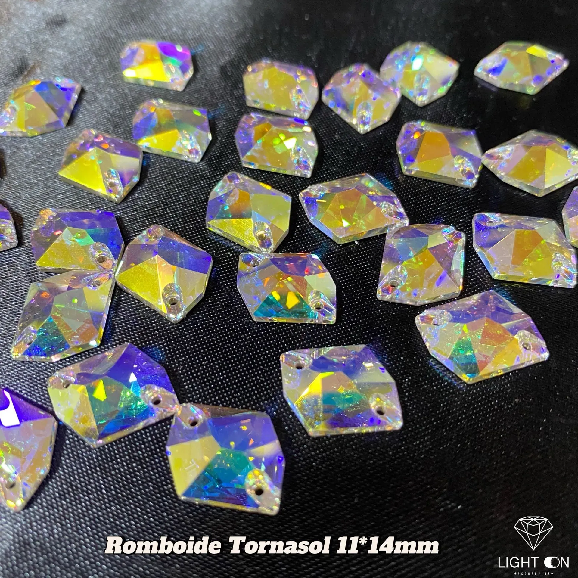Pedreria en Vidrio bella stone Romboide tornasol todos los tamaños (11*14, 17*21, 25*27mm) (unidad)