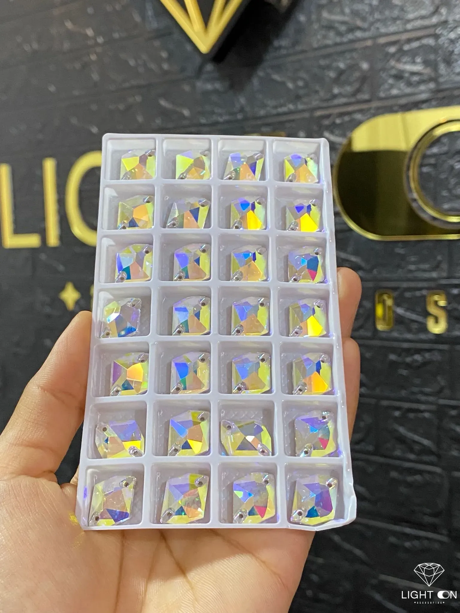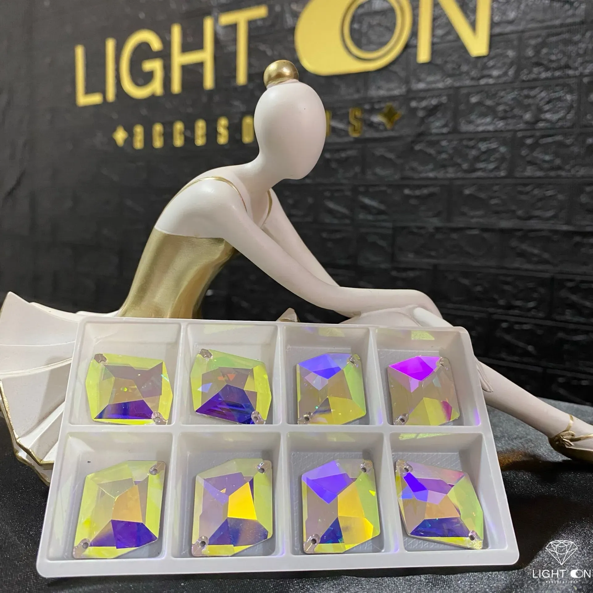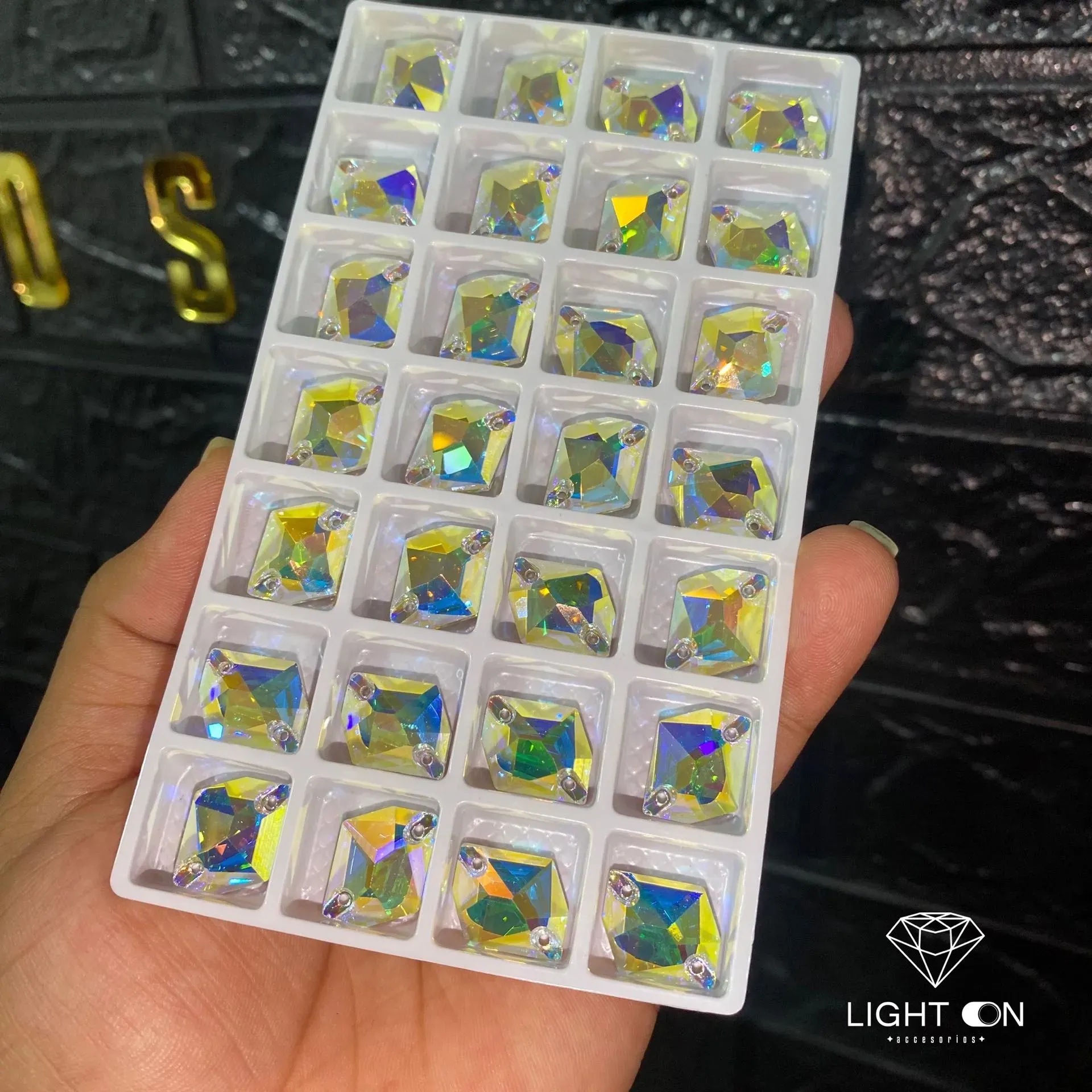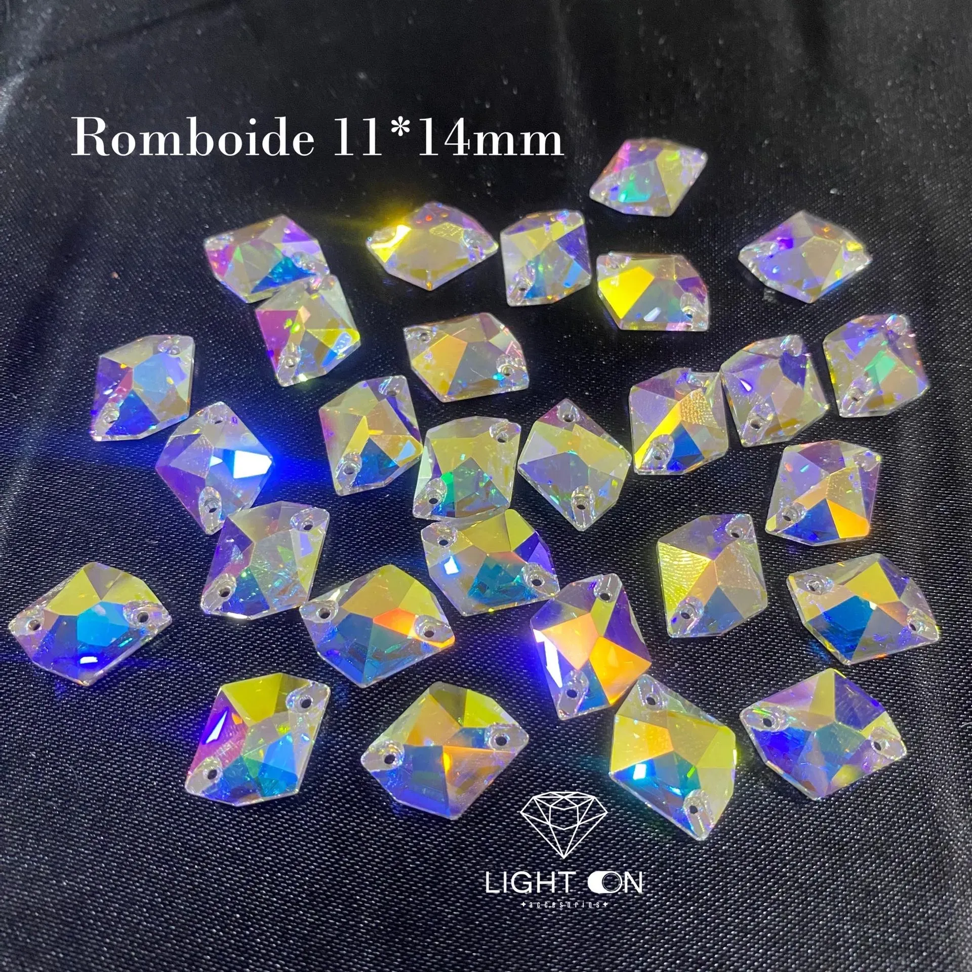 Pedreria en Vidrio bella stone Romboide tornasol todos los tamaños (11*14, 17*21, 25*27mm) (unidad)