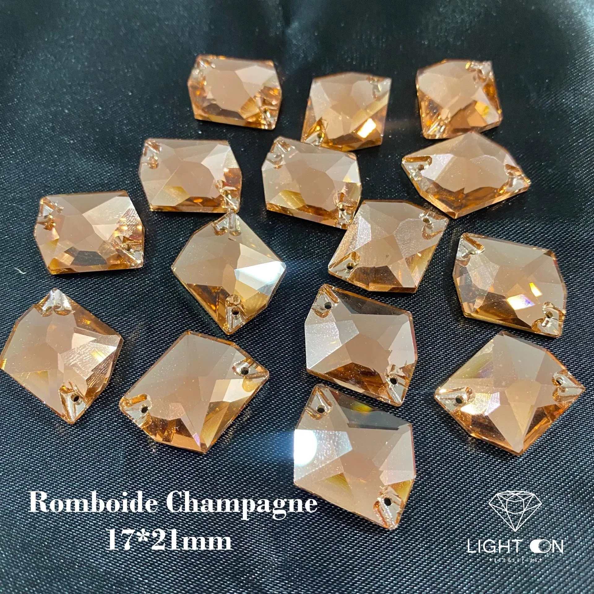 Decora tus creaciones con este elegante vidrio romboidal en color champaña de 17x21 cm. Ideal para crear un ambiente sofisticado y moderno. Aporta estilo y distinción a tus espacios con esta pieza única. ¡Haz que tu decoración brille con este vidrio de calidad!